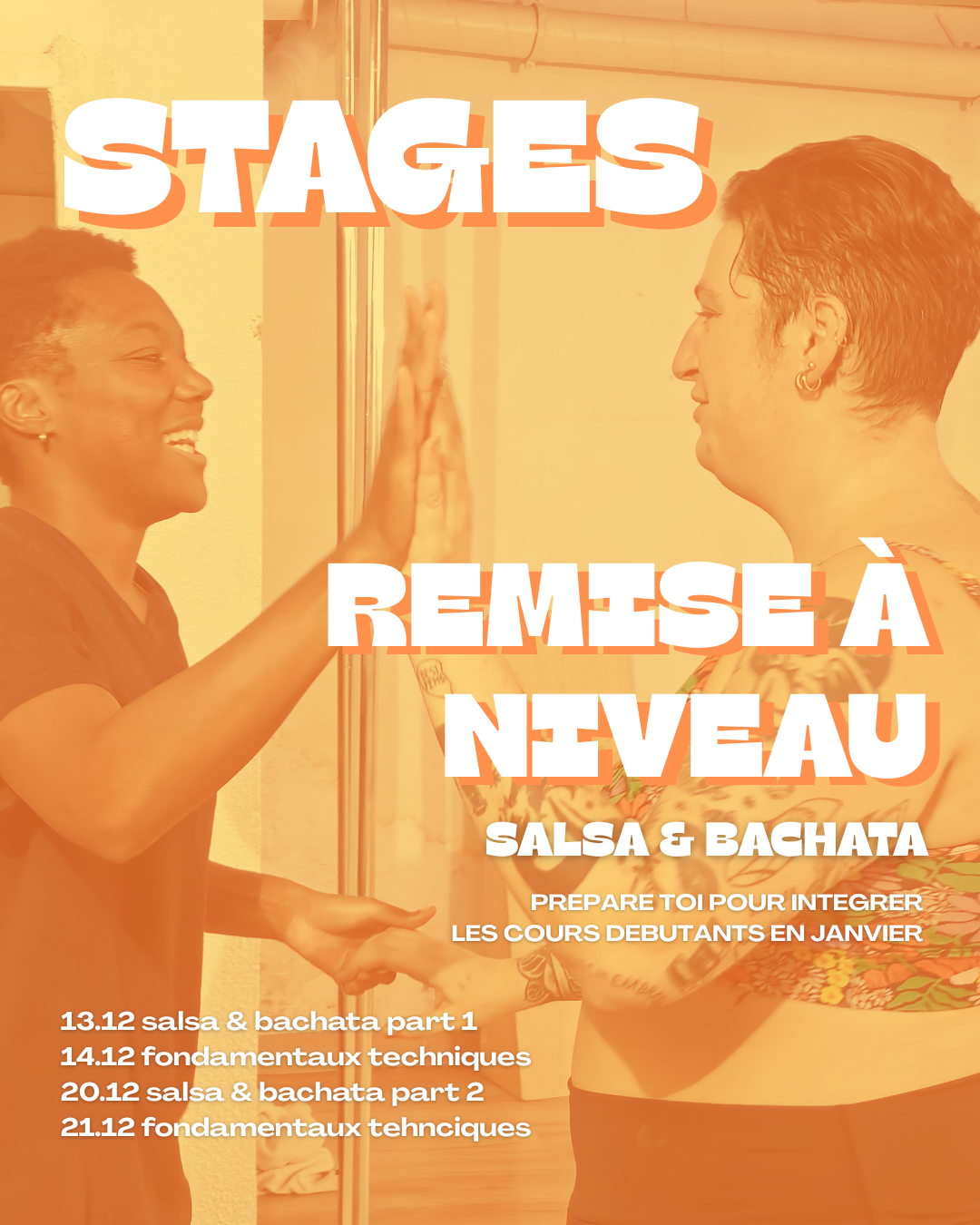 T'as raté la rentrée alors que ton rêve c'est d'apprendre la salsa ou la bachata dans un cours de danse queer ?! Heureusement pour toi, tu peux maintenant rattraper 4 mois de cours réguliers et intégrer nos cours en janvier !